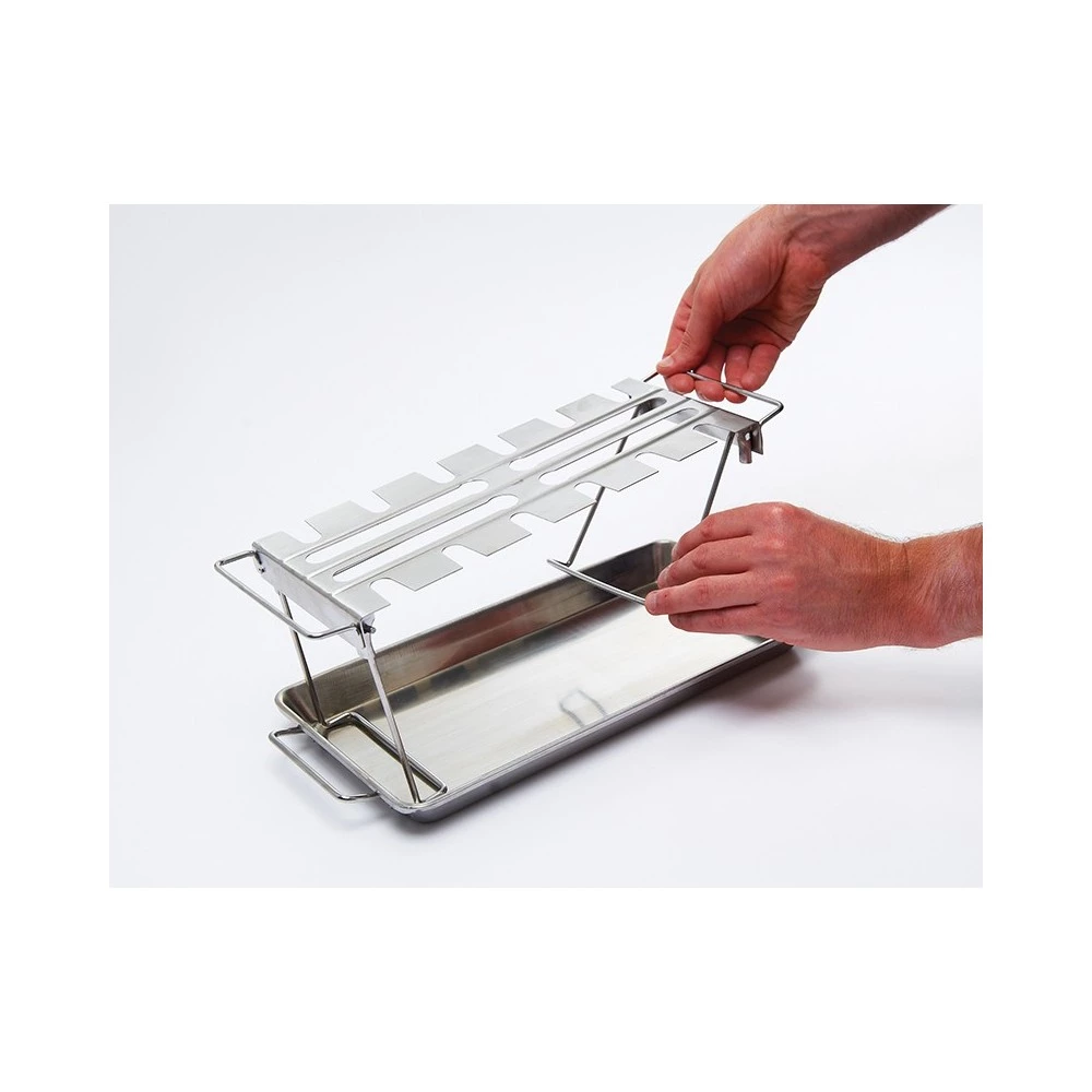 Rustfri stål holder giver brugerne mulighed for at hænge kyllingevinger, lår, underlår, osv. uden at lægge dem på grillens overflade
