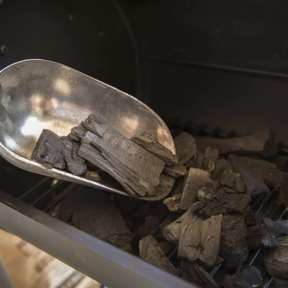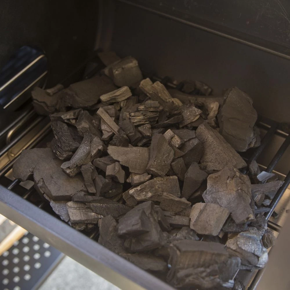2 bakker til kul og spredning af røg og udtræksaskeskuffe til opsamling af aske i begge kamre.