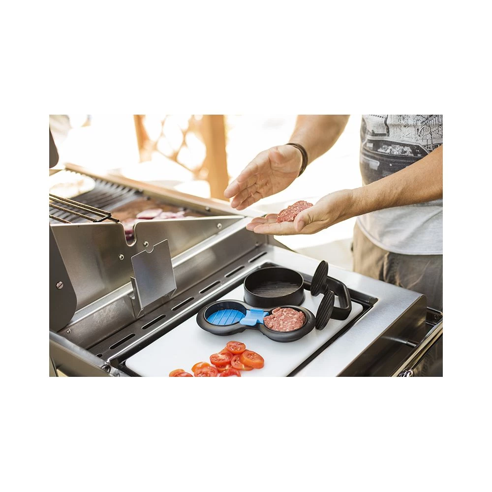Napoleons Gourmet Burgerpresserkit består af seks dele, er udstyret med en non-stick-belægning, der gør den nem at rengøre, og den tåler naturligvis maskinopvask.