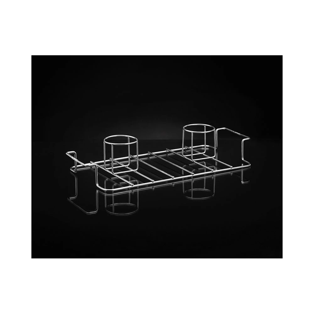 • En dobbelt kyllingeholder i 0,5 cm rustfri stål med plads til en dåse under hver