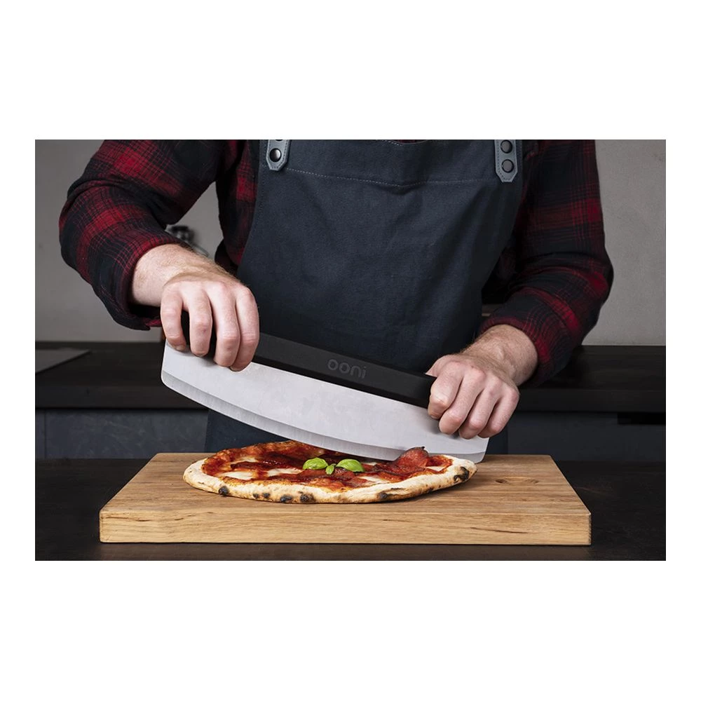 Skær hele pizzaer i to med et hurtigt skridt ved hjælp af Ooni Pizza Cutter Rocker Blade. Det ultraspit rustfrie stålblad er 14 tommer langt og afsluttet med et behageligt let grebgreb.